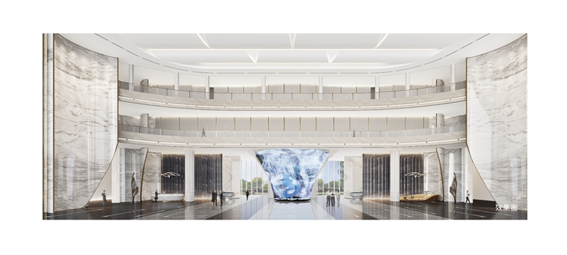 约2500㎡青岛在建最大最高共享大堂,约18.8m高挑空,约58.8m无柱大跨度,青岛在建最大、最宽、最高的共享大堂。
