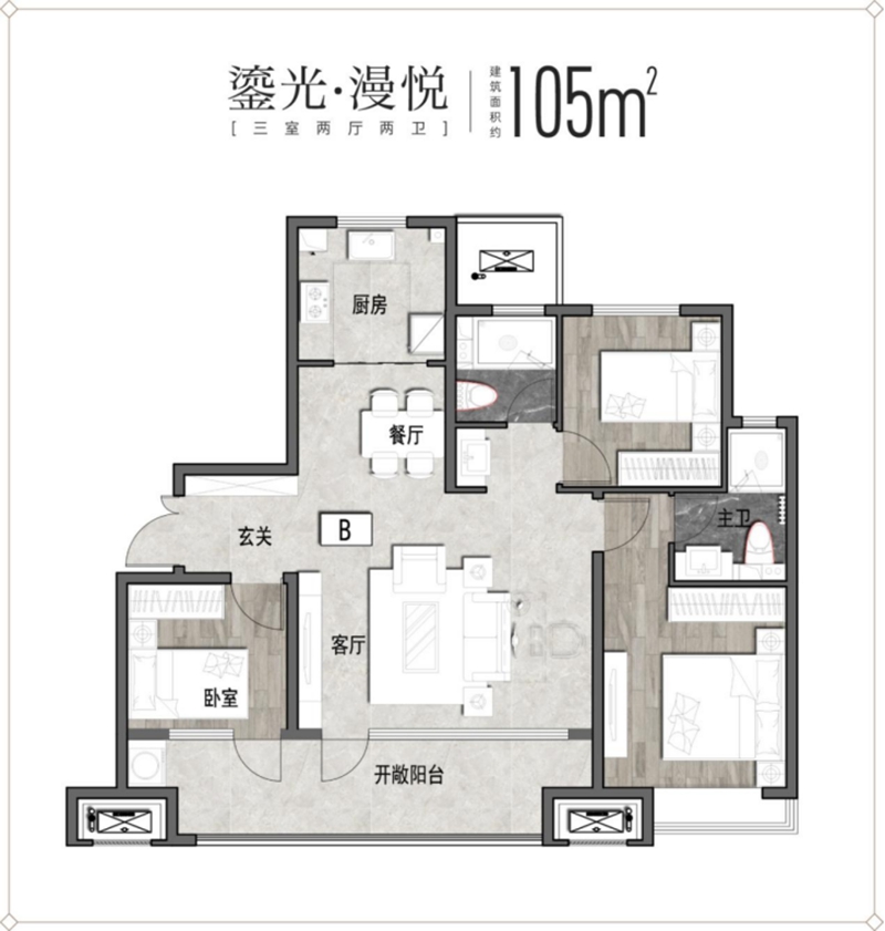 户型升级:匠造零浪费、零过道、零死角的极致户型美学,呈现建面约95-140㎡的宽域空间,全系标配宽厅,主卧套房设计,双阳台布局,兼具了卓越的功能性与非凡的品质感。