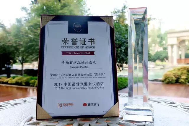 青岛,2017年9月——青岛鑫江温德姆酒店荣获由“酒店高参”举办的2017首届高参奖“最受欢迎会议酒店”