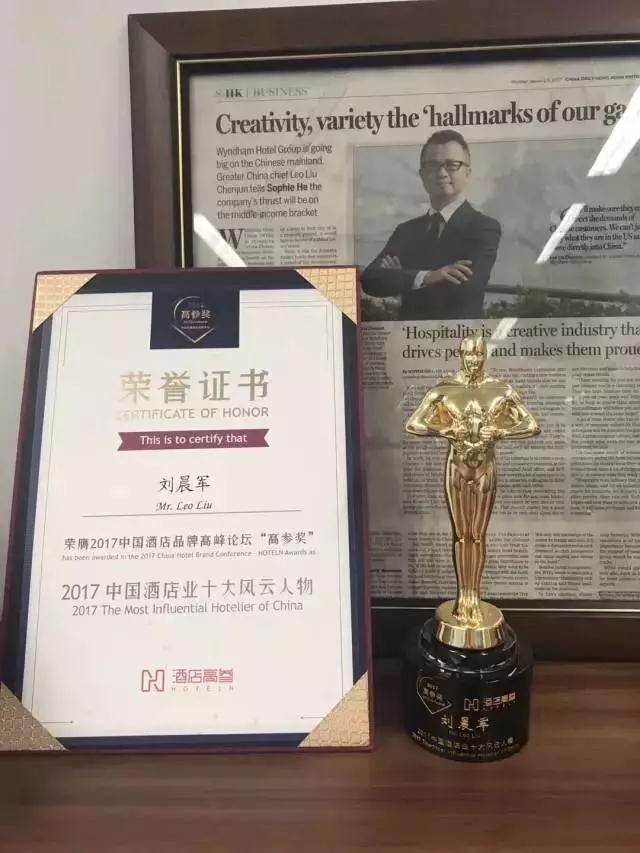 与此同时,在 “高参奖”的颁奖典礼中温德姆酒店集团被评为“2017中国最具跨界创新酒店集团”,其大中华区总裁刘晨军先生荣获“2017中国酒店业十大风云人物”。
