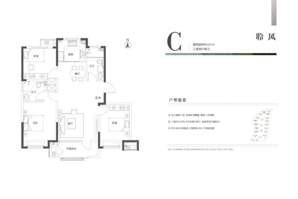 建面约97-107㎡双卫三居,建面约129㎡瞰山四居