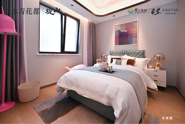 晨起见朝光,暮见栖鸟还,理想的生活需要光影陪伴。南向主卧套房设计,大尺度浪漫飘窗,让主人目之所及便是携带着鲜活绿氧的美景,太太喜欢喝茶,放个小茶座又是一番惬意。
