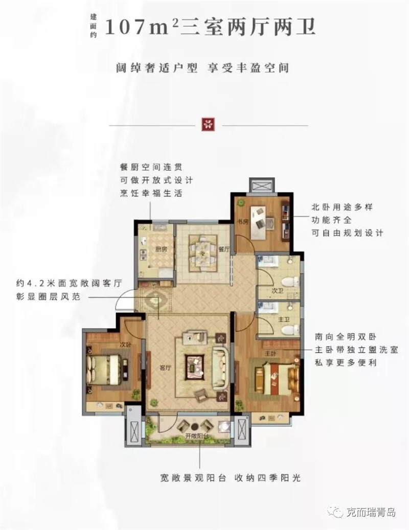 鑫江·花漾里在户型设计上,没有追求大户型,小高层85-97㎡,洋房97-118㎡,楼王也没有搞特殊化,就是118㎡三室两厅两卫户型,这样的户型设计,结合15000元/㎡的销售均价,用意很明显,就是要打造一座活力社区,让年轻人以承受得起的总价,享受高品质的生活。