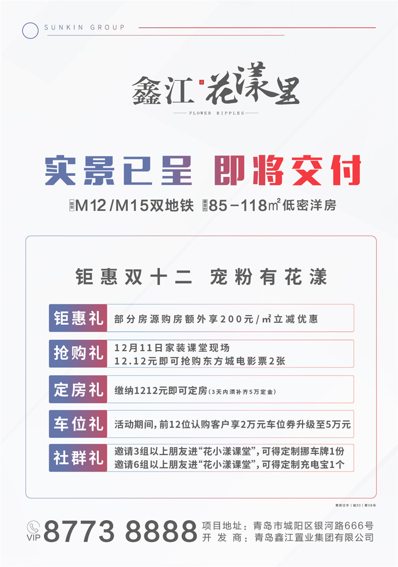 为敬谢一城厚爱,鑫江置业年末献礼,特推出“品质交付季|12.12年终盛典”活动,年终抄底钜惠,缤纷福利,火爆来袭!