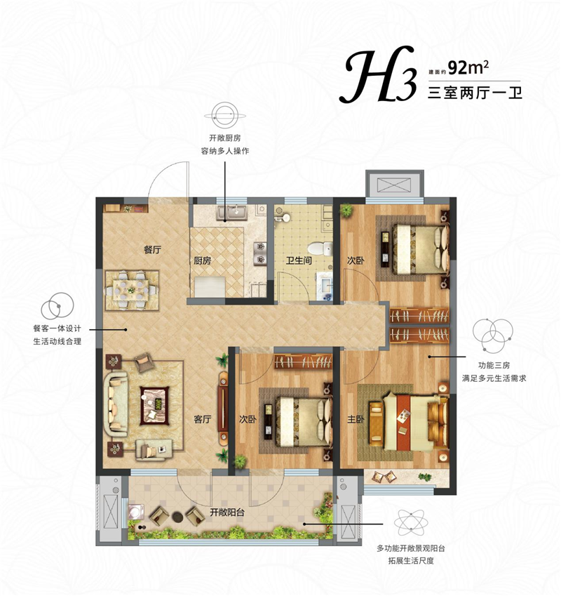 鑫江·花漾里建面约85-118㎡三维HOME家,精研空间的更多应用可能,让家庭生活更加融洽和亲密。