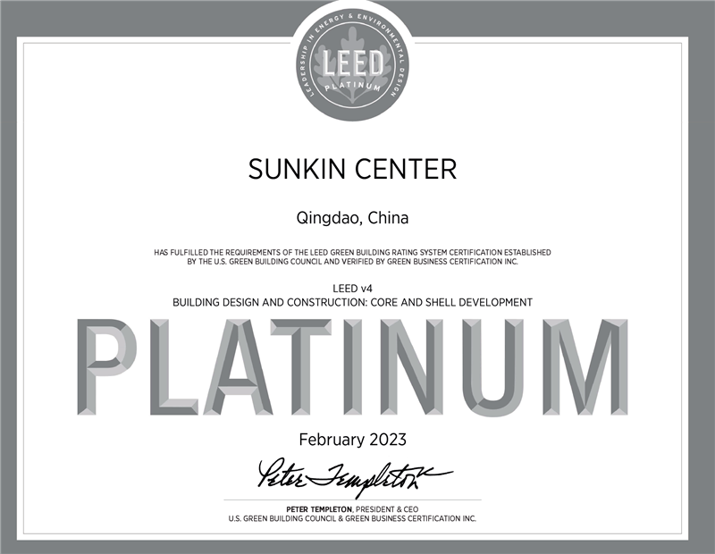 开年喜讯!鑫江中心于2023年2月成功斩获“LEED铂金级认证”。这一认证意义非凡,它代表国际级绿色建筑评级体系中最高级别的认证荣誉。鑫江中心成为山东省2023年第一个LEED新建建筑写字楼铂金级认证项目(青岛写字楼铂金认证最高分),也是西海岸首座获得此殊荣的写字楼。
