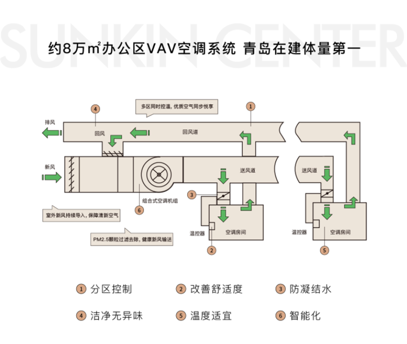 约2500㎡青岛在建最大最高共享大堂,约18.8m高挑空,约58.8m无柱大跨度,青岛在建最大、最宽、最高的共享大堂。