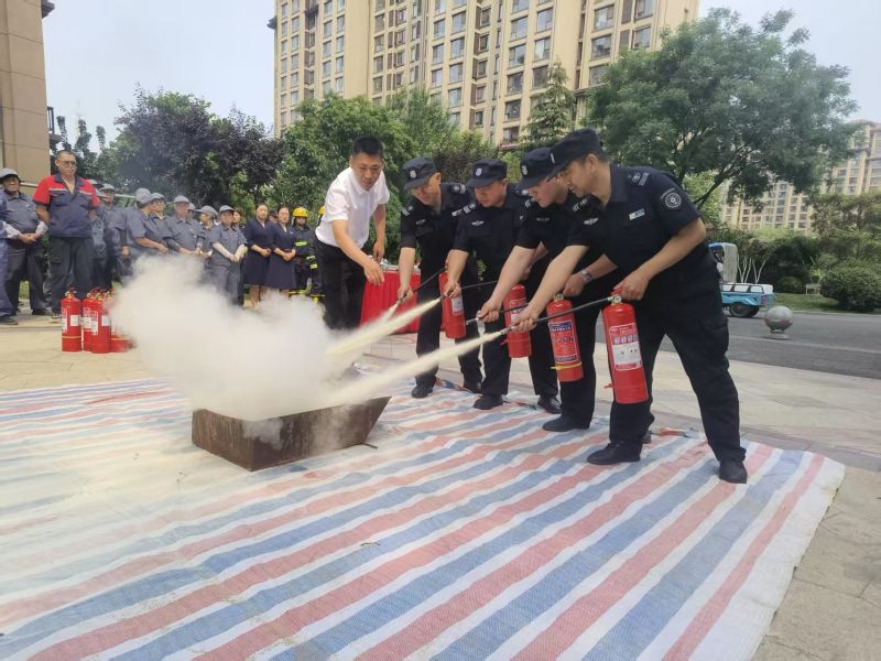 01 消防应急演练: 模拟突发火情,重点检验初期火灾扑救、疏散引导、消防设施联动及紧急救护流程。鑫江物业工作人员反应迅速,灭火器操作规范,疏散路线清晰高效,充分体现了日常训练的扎实功底。
