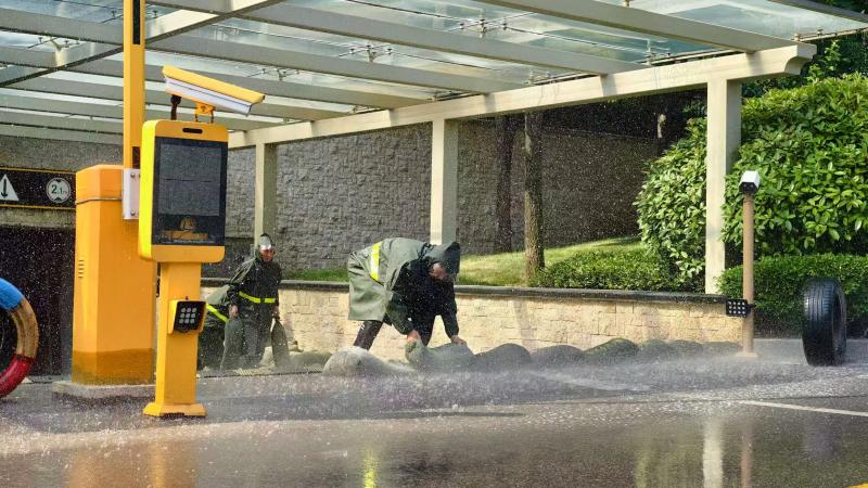 02 防汛及台风应对演练: 针对夏季汛期及台风季特点,模拟暴雨积水、设施加固等场景。演练涵盖沙袋快速封堵、排水设备启动、高空坠物隐患排查、信息预警发布等关键环节,确保极端天气下应急响应工作有序推进。