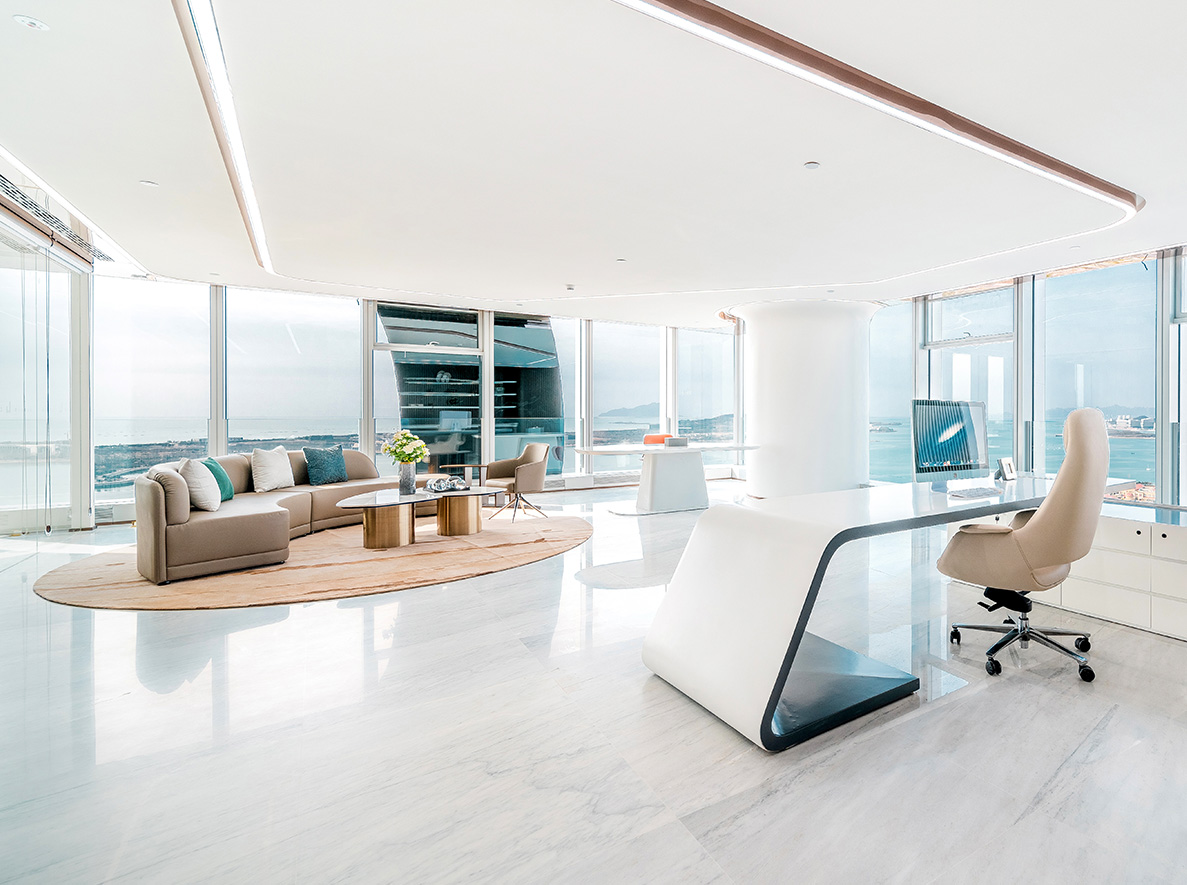 鑫江中心是鑫江集团投资的高端商务综合体项目。项目择址国家级经济新区青岛西海岸,据唐岛湾金融科创区核芯地段,是一座集办公、科研等功能于—体的国际超甲级写字楼。项目总建筑面积约18万㎡(含商业),紧邻滨海大道及唐岛湾公园,三面海一面城,优享270°一线海景资源,楼体采用钢骨混凝土框架核心筒结构,U型双子塔造型,独创海浪式大堂入口,建面约2500㎡共享大堂,楼间约58.8m无柱大跨度、18.8m挑空空间设计,筑就青岛市巅峰商务新封面;项目引入全球前言科技,打造全新智慧楼宇系统,采用新型VAV中央空调系统,运行体量约8万㎡,是目前青岛在建单体运行体量最大的商务项目,更加节能高效环保。