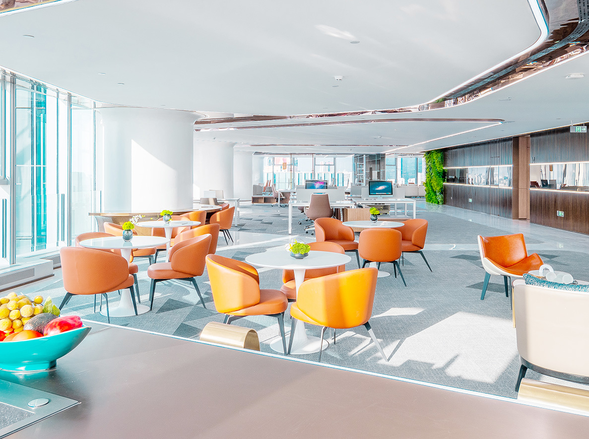 项目A座形象高度约165m,单层面积约2200㎡,B座形象高度约99m,单层面积约1600㎡,全自持统一运营,目前建筑主体及园林景观已竣工。